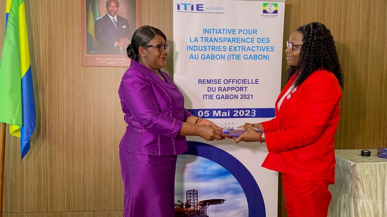 REMISE OFFICIELLE DU RAPPORT ITIE GABON 2021 AUPRÈS DE MADAME LE MINISTRE DE L’ECONOMIE ET DE LA RELANCE LEV 05 MAI 2023
